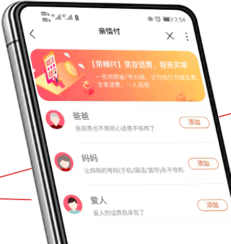 全国产品随心组,不用更改原有自用套餐,一人搞定、一点付费,全家享用。